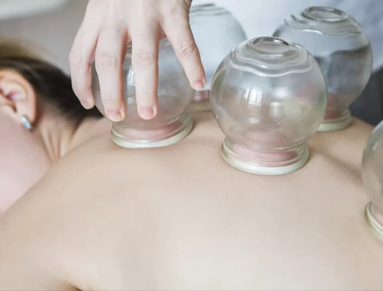 Cupping and Moxibustion therapies promote relaxation and healing through traditional techniques.
